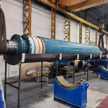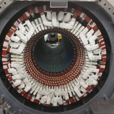 We carried out the replacement of stator windings, disassembly of the rotor retaining ring, renewal of rotor under-cap winding insulation, and high-speed rotor balancing operations.